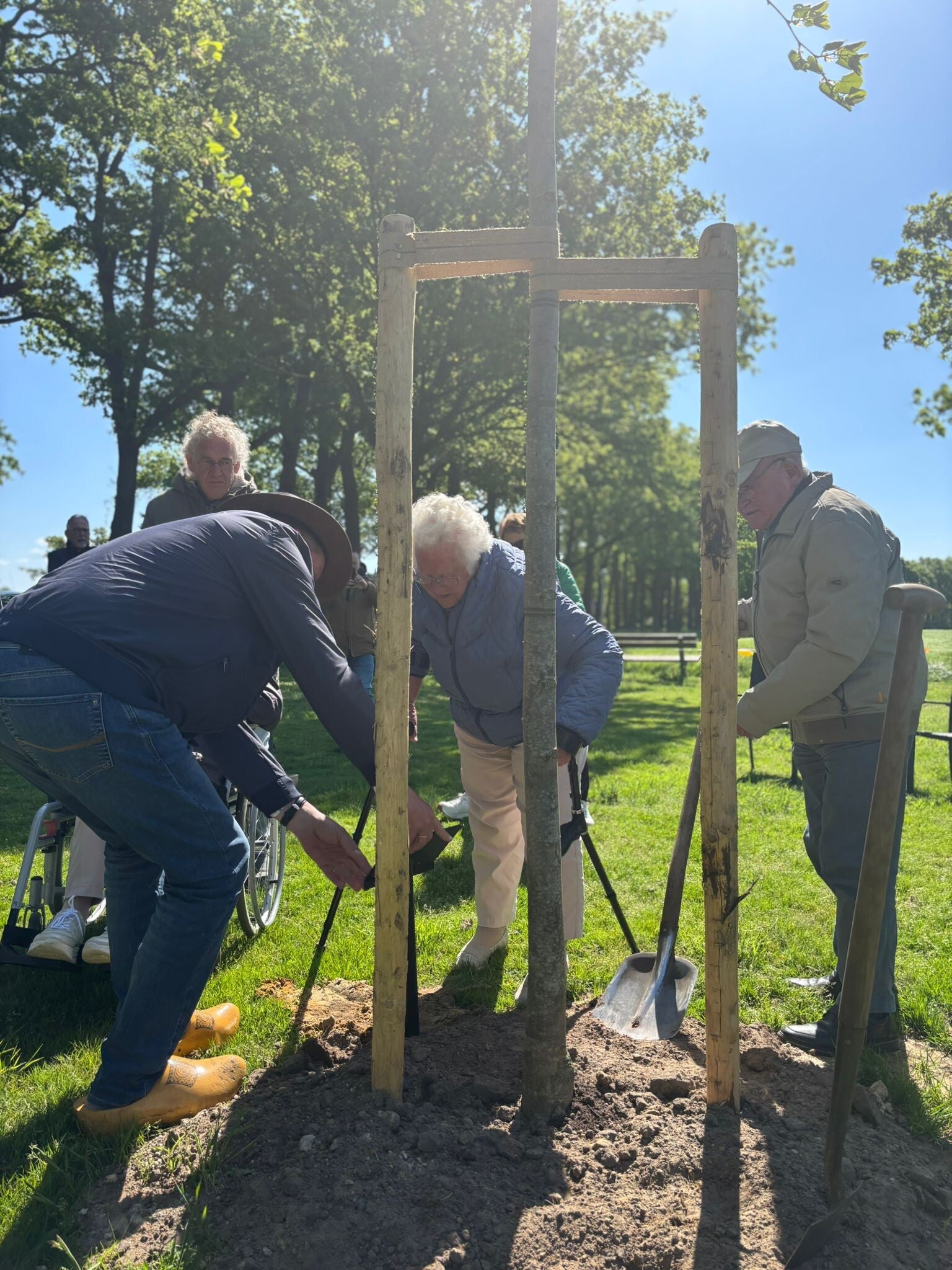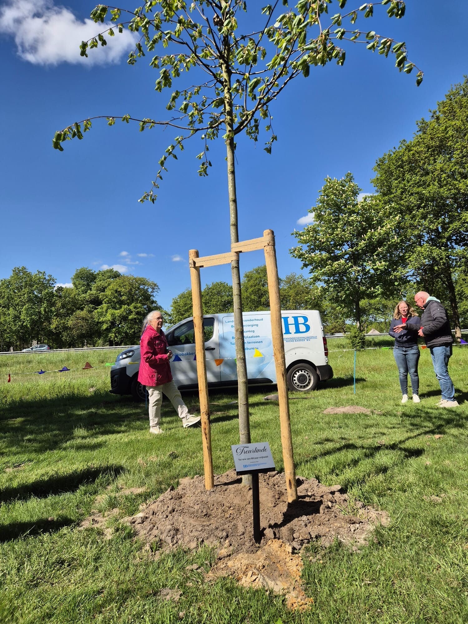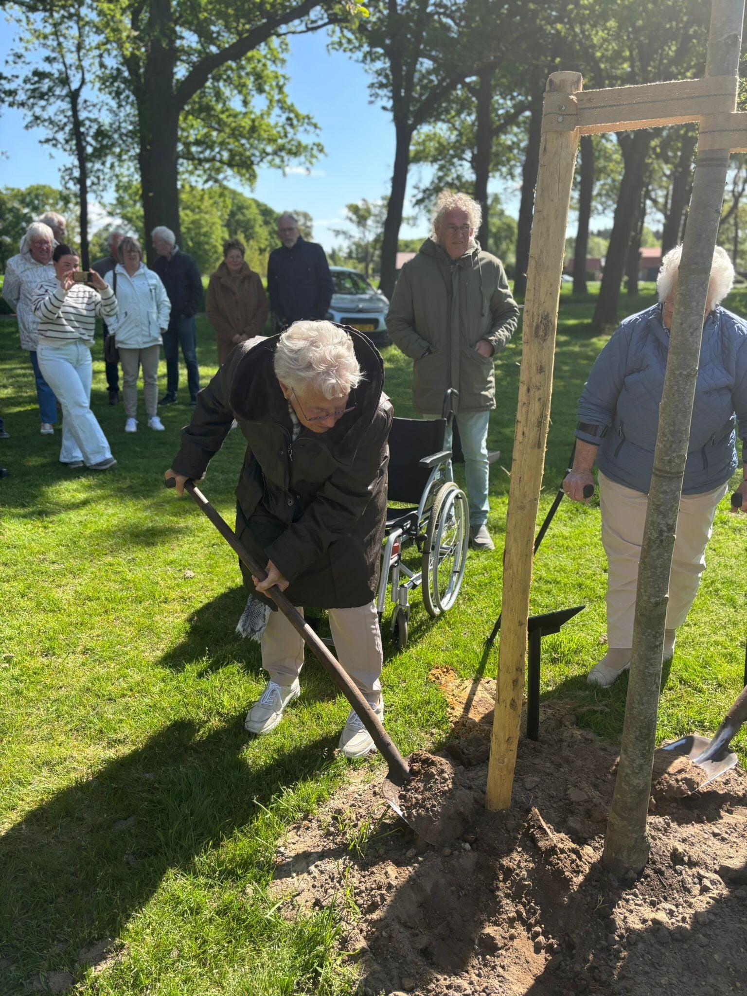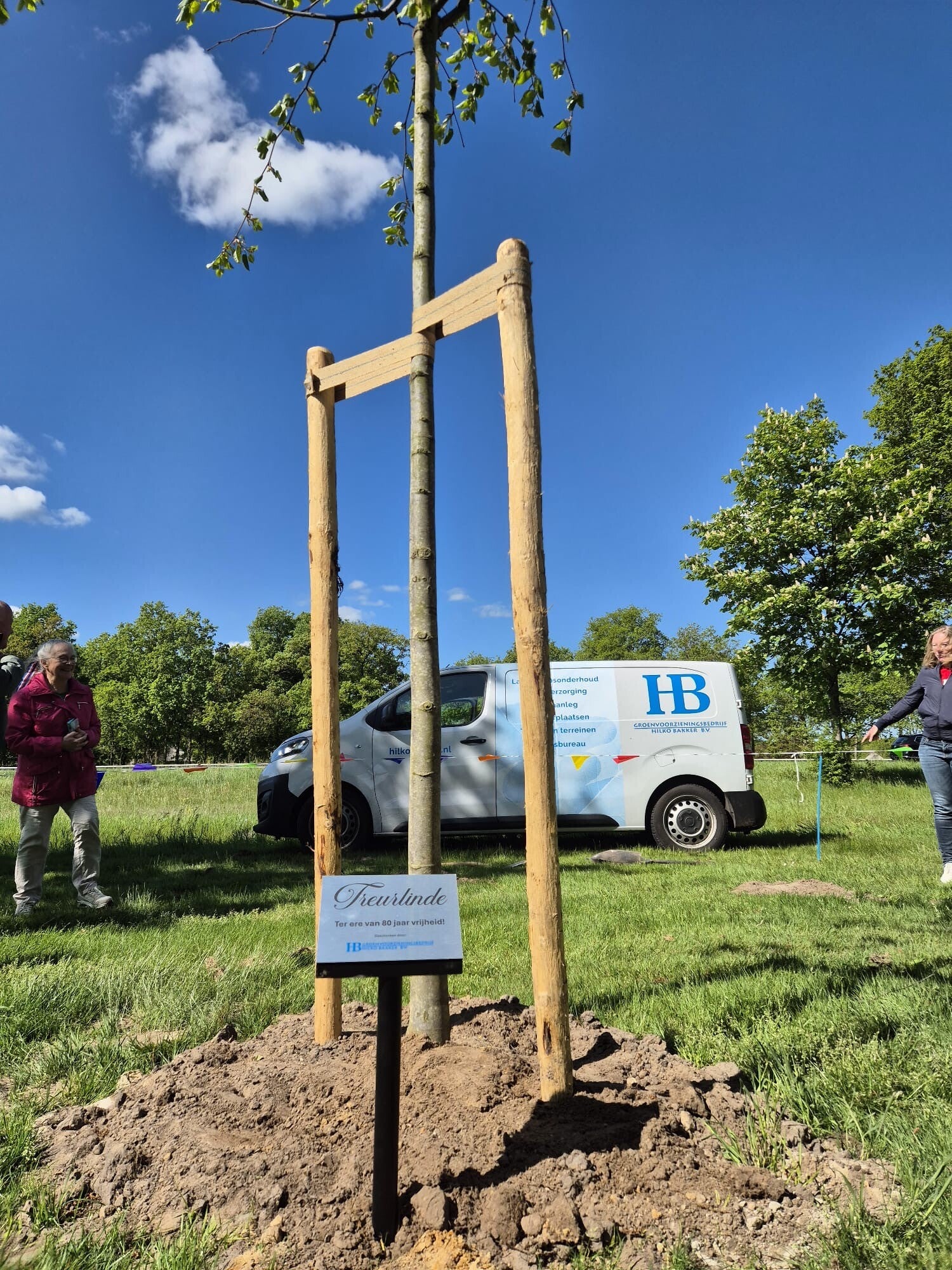 Na het ontbijt liepen we naar het picknickveldje aan de Hoogeveenscheweg om de vrijheidsboom te inhuldigen. Dit werd op een mooie manier gedaan door Arend Takens, Hendrikje Takens en Arentje Westert. Deze treurlinde is door Groenvoorzieningsbedrijf Hilco Bakker geschonken aan de bewoners van Pesse. De boom herinnert ons aan verdriet, maar staat elke lente weer in bloei. Dit zien we als een symbool van vrijheid, vreugde en hoop.